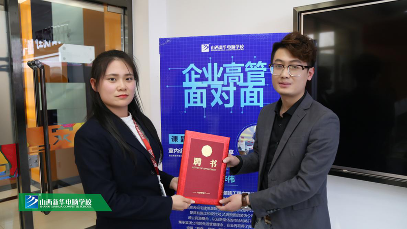 活动结束后,我校聘请山西贵舍尚宅建筑装饰工程有限公司首席设计师焦李伟为客座讲师,并颁发聘书。焦经理表示学生们上课气氛很活跃,能够积极参与到课堂中,同时,他非常欢迎学生去企业参观学习,毕业后来实习工作;同时希望与学校达成深度校企合作,为企业输送更多的出色人才。
