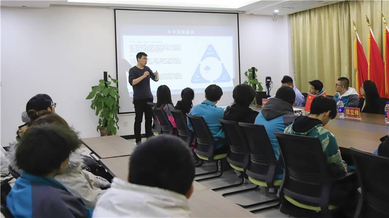 之后,范经理详细的介绍了公司的发展历程,包括企业文化,公司制度,招聘岗位;同时告诉学生们,公司每年都有晋升制度,为大家提供很大的发展空间,并热烈邀请大家去企业实习,同学们就工作内容及薪资向范经理咨询,范经理耐心的给大家介绍。