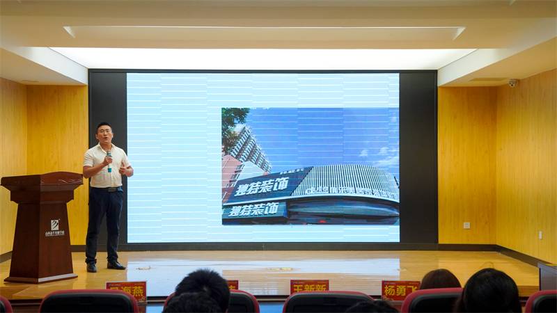 王经理幽默风趣的自我介绍赢得了学生们的阵阵掌声,更加激起了学生们对企业的兴趣;课堂上,王经理通过PPT的演示向大家介绍了公司形象照及员工风采,告诉学生们,员工的形象是非常重要的,员工的个人形象不仅代表着公司的整体形象,更代表着公司的精神面貌,同时,企业要求全体员工工作期间必须着正装;学生们告诉王经理,在校实训期间,学校就是这样严格要求的,企业表示学校这种办公化的实训对于学生塑造职场形象是非常有帮助的。