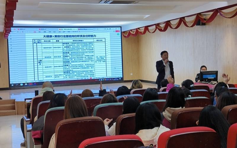 讲座伊始,美悦雅韵的冯老师率先登场,凭借其在美容领域的深厚造诣,为同学们展开了美容相关知识的精彩讲解。他从皮肤护理的基础原理讲起,深入剖析不同肤质的特点与护理要点,无论是干性皮肤的保湿秘诀,还是油性皮肤的控油诀窍,都一一详细解读。通过生动的案例和直观的图片展示,让同学们对美容行业有了更为深入和全面的认识,为大家打开了一扇通往美容专业领域的知识大门。