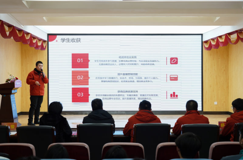随后,项目负责人杜老师详细介绍了本次校企合作的直播项目。他表示,此次合作聚焦电商领域,学生将深度参与水塔醋业的线上营销、直播带货等项目,把课堂所学转化为实际生产力。通过与企业共建实训项目,学校也能够将市场需求融入课程设计,让学生在实战中提升专业技能,积累宝贵的行业经验。