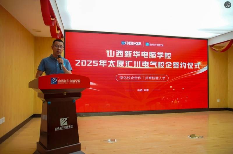 仪式伊始,山西新华电脑学校校区朱主任发表致辞。他对太原汇川电气技术公司一行的到来表示热烈欢迎,并介绍了学校的办学特色、专业建设及人才培养成果。“校企合作是职业教育发展的必由之路,太原汇川电气技术公司在行业内拥有深厚的技术积累和广阔的发展平台,此次合作将实现学校人才培养与企业岗位需求的精准对接。”朱主任表示,学校将以此次合作为契机,整合优质教学资源,与企业共同探索人才培养新模式,为企业输送更多高素质技能型人才。