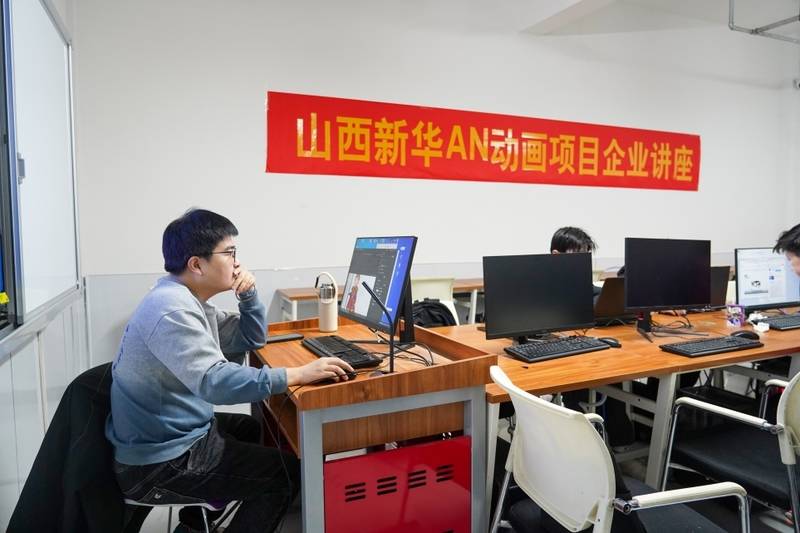 在最受期待的实操演示环节,企业老师通过现场投屏,手把手指导学生操作AN软件。针对学生日常练习中容易遇到的“人物动作僵硬”“画面帧率不稳定”“镜头转场生硬”等问题,企业老师逐一进行演示教学:以骨骼工具为例,详细讲解如何通过调整关节参数让人物动作更流畅自然;结合时间轴面板,演示如何合理设置帧率,避免画面卡顿;分享常用的镜头转场特效添加技巧,提升漫剧的视觉表现力。学生们紧盯屏幕,认真记录笔记,不时拿出手机拍摄操作步骤,生怕错过关键细节。