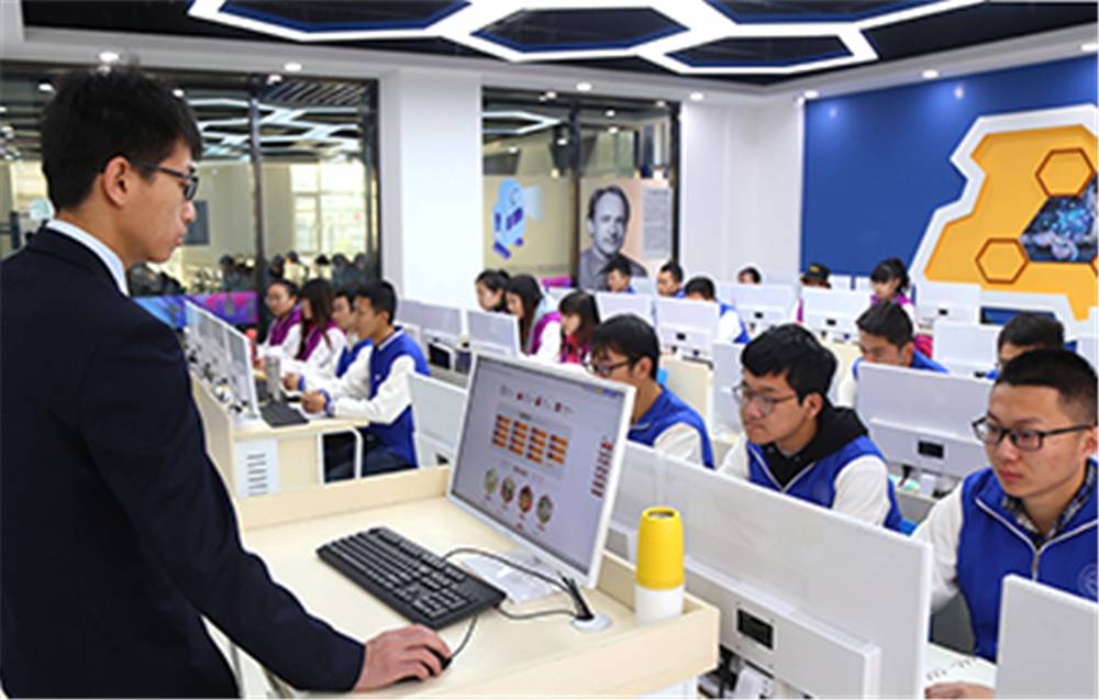 新华互联网大数据人才实训基地以蓝色为基调传递出“科技”和“创新”的感觉,技术给人无限的遐想与渴求欲。科技蓝中有一抹叫新华。我校设有项目实训室、硬件工程师实训室、设备配置实训室及综合布线实训室。提供可见的场景实战,提高学生的实践能力,为学生顺利就业奠定了坚实的基础。