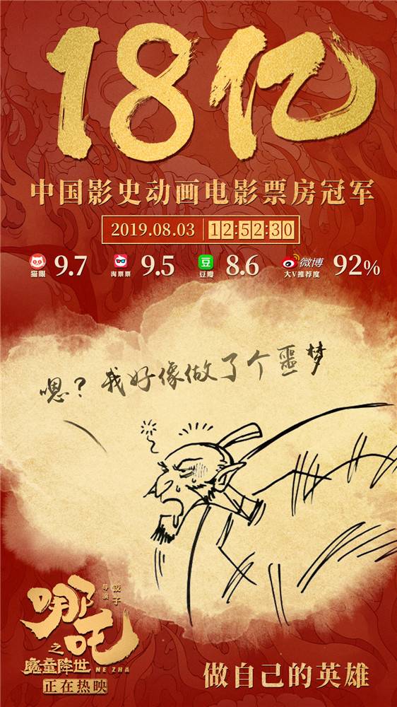 摘要: 电影哪吒之魔童降世官方微博发布消息称,这部7月26日正式上映的国产3D动画总票房已突破18亿。值得一提的是,国漫电影哪吒目前成绩已经超过《疯狂动物城》,正式...
