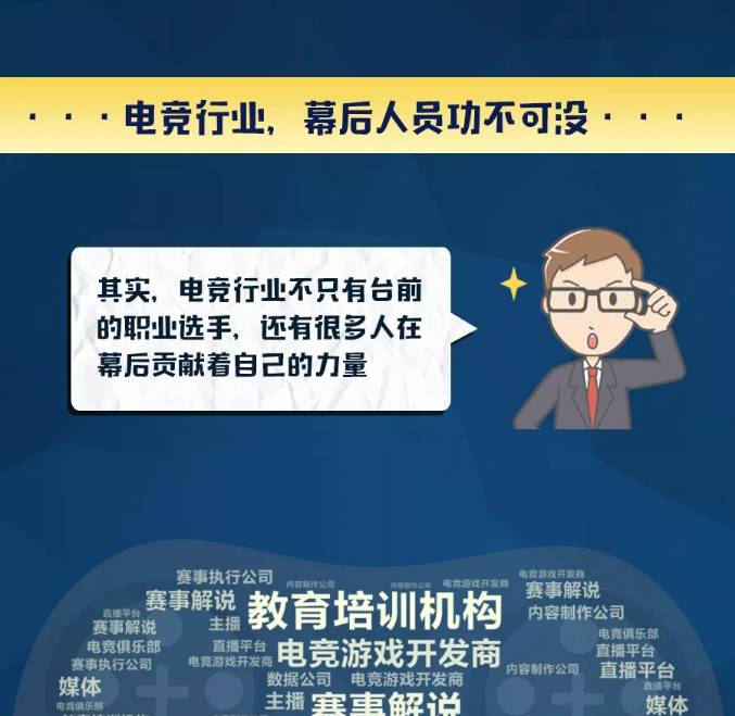 不过,对于电竞行业本身,很多人还缺少了解。其实,参加各种比赛的职业选手只是电竞从业人员的”冰山一角“……