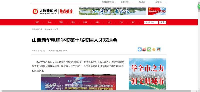 2019年6月28日,我校隆重举办了“32115人才培养计划启动暨山西新华第十届校园人才双选会”。全国各地的名企HR来到位于龙城太原的山西新华互联网学校招揽英才。