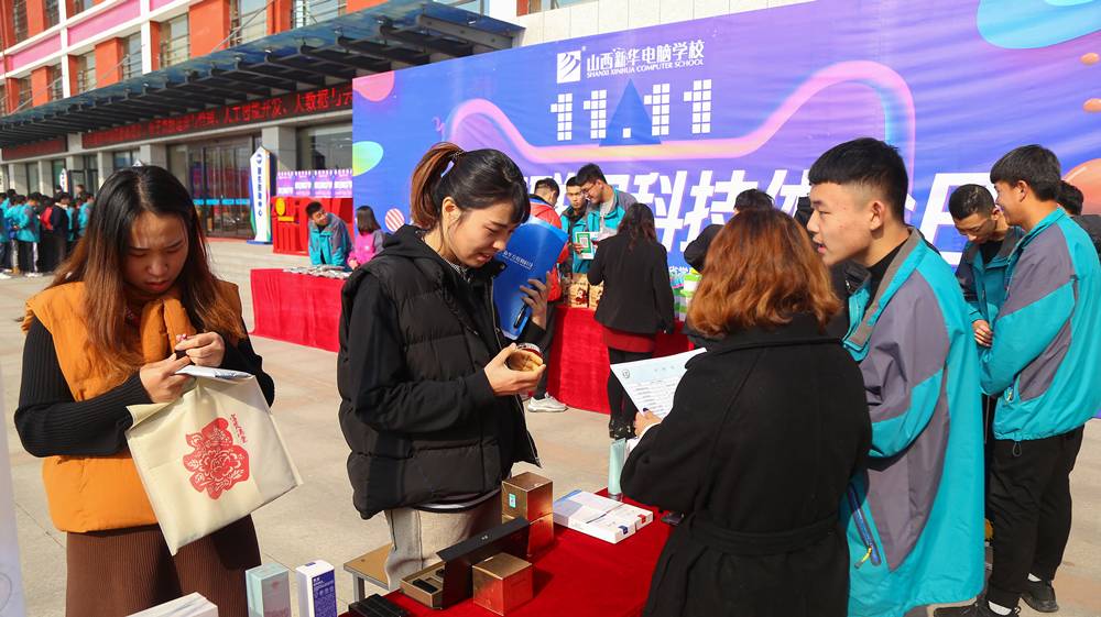 每年的“双十一” “双十二”期间,山西新华电脑学校继续采用线上线下相结合的模式,打造“校园购物节”。在活动中,所陈列的商品也是形式多样、丰富多彩,吸引了众多老师及学子前来咨询和购买。
