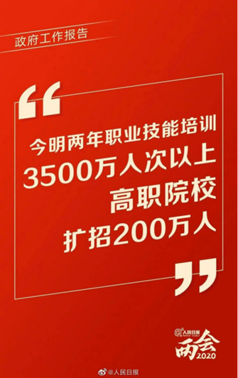 在今年的《政府工作报告》中,国务院总理明确表示:今明两年职业技能培训3500万人次以上,高职院校扩招200万人,要使更多劳动者长技能、好就业 。职教话题今年异常火热,在政策利好发酵下,职业教育将进入黄金发展期,2020年必定是职业教育发展至关重要的一年。