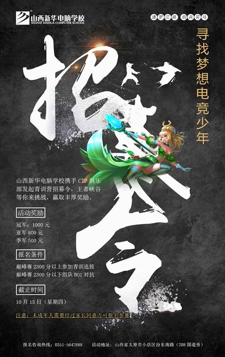 王者荣耀青训营报名已经开始,各位有志于投身职业电竞事业的玩家们,是时候展现你们真正的技术了,或许未来的你就将站在世界赛场为梦想与荣誉而战。山西新华期待你的到来!王者,一起去见证梦想与荣耀!