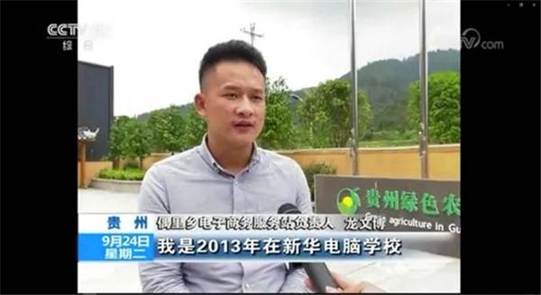 龙文博,自2016年在新华互联网科技电子商务专业毕业后,通过建立电商服务站把家乡特产蜂蜜,茶枯粉,山茶油等销售到全国各地,并成功带动了当地农民就业,他创办的贵州黔锦商务有限公司被评为锦屏县十佳出色企业,龙文博也被评为全县十大杰出青年。2019年9月,CCTV新闻频道对龙文博的电商创业经历进行报道。现在的他已经是锦屏县“十佳出色村级电子商务服务站”合伙人,在村里建起了十几个电商服务点。龙文博在媒体采访中多次提到学校创就业指导课的开展,为他今后的创业发展打下了坚实的基础。