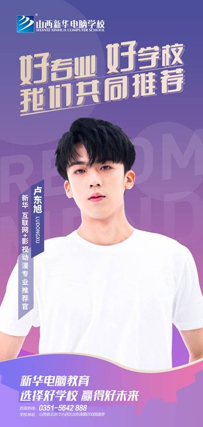 长相帅气的卢东旭,凭借着精致的五官备受肯定,圈粉无数!此次作为新华互联网科技影视动漫的推荐官,卢东旭向广大学子推荐影视动漫专业。
