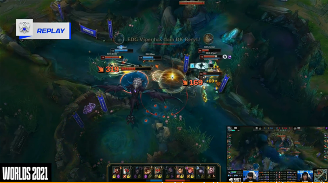 北京时间2021年11月7日,在EDG与DK鏖战了五局之后,EDG较终凭借着3-2的总比分成功击败了DK。夺得了本届全球总决赛桂冠的同时,也是成为了全球总决赛史上第八支桂冠队伍。这也是继IG、FPX 之后,LPL拿到的第三个世界桂冠!他们将桂冠奖杯成功再次留在LPL赛区!