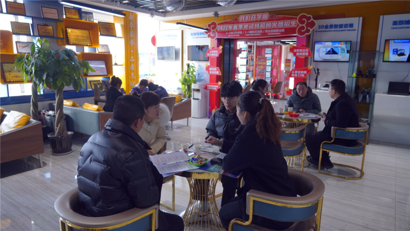 一大早,报名现场就是一片繁忙热闹景象,每个座位都坐满了人,有一些家长甚至没有地方坐,贴心的咨询老师们给家长们搬来凳子,热情的招待到场的学生和家长们。现场氛围既有序又火爆。据了解,很多学生都是来预定校企定制班名额的,而且刚好赶上学校的人才预定会,还有机会和企业面对面交流。