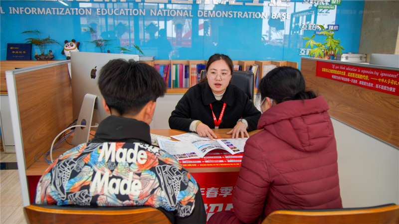 咨询中心的老师热情的向来校的家长和学生介绍学校开设的专业、校园环境、教学设施、师资力量等情况,并根据同学们的实际情况、求学需求和兴趣爱好,结合他们的个人特点为他们推荐适合的专业。家长和同学们都非常仔细的聆听咨询老师的参考建议。面对如此火爆的咨询报名场景,咨询中心王主管谈到“现在我们的职业教育很受国家重视与扶持,尤其是互联网行业人才的需求与日俱增,年前很多家长已经带着孩子过来咨询了,现在很多都是送孩子来上课学习的。”