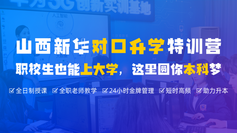 山西新华对口升学特训营分为“全科系统托管班”、“文化课突击班”、“职业技能提升班”,将教学大纲要求与学生全方位测评结果相对照,围绕各学科要点,综合学生学习情况,制定科学的辅导方案,专业老师全程监督指导,定期检查,及时辅导,一步一步掌握知识要点,循序攻克考试难点。同时为了保障学生家长的根本利益,让家长更加相信山西新华的教学实力,在对口高考院校录取结束后15天以内,学生未考入大专及以上院校,可以申请退还学费的30%,学生可以毫无后顾之忧的来山西新华学习,家长请放心。