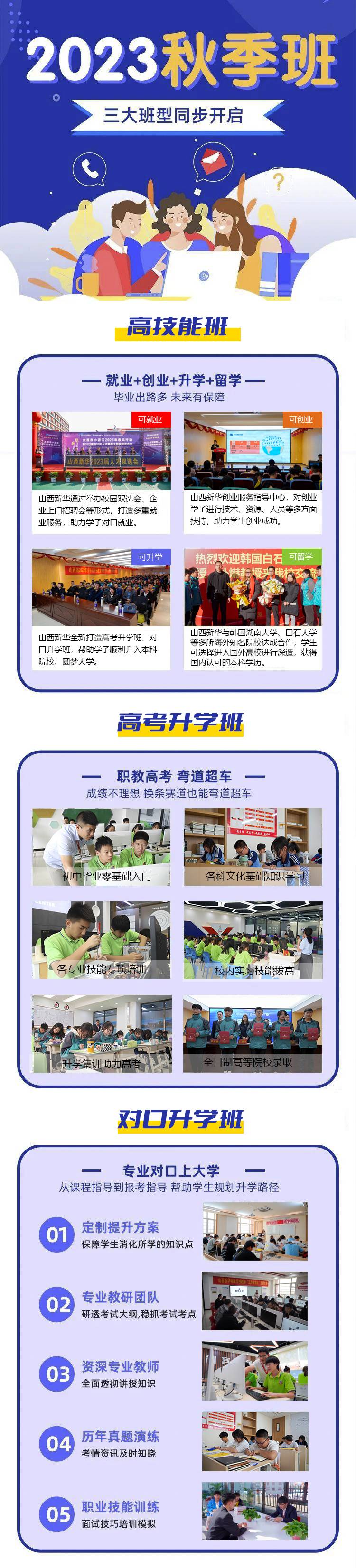 为助力有升学需求的学子实现梦想,山西新华紧跟市场需求开设职教高考班,整合教育资源、采用专项培养模式,在注重文化课培养的同时提高专业技能教学。
