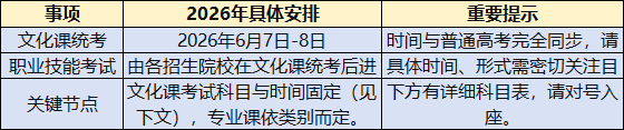 变化解读:文化课考试时间与高考同步,体现了对口升学考试的规范性与重要性。这意味着同学们需要更早进入全面复习状态,尤其是语文、数学、英语这三门必考文化课。