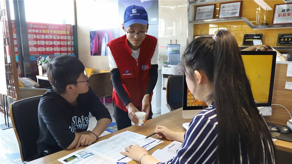 “阳光导学”志愿服务活动是山西新华电脑学校“奖助勤勉”计划中的一个部分。新华学子可以自己的暑假休息时间,志愿留在学校,为广大新入学的学弟学妹们与来学校参观考察的学子和家长服务。学校会给予他们适当的经济报酬。