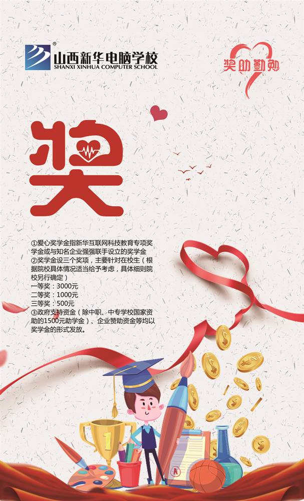 山西新华电脑学校‘奖助勤勉’计划主要在于鼓励和援助经济困难的学生,重点针对品学兼优的学生。
