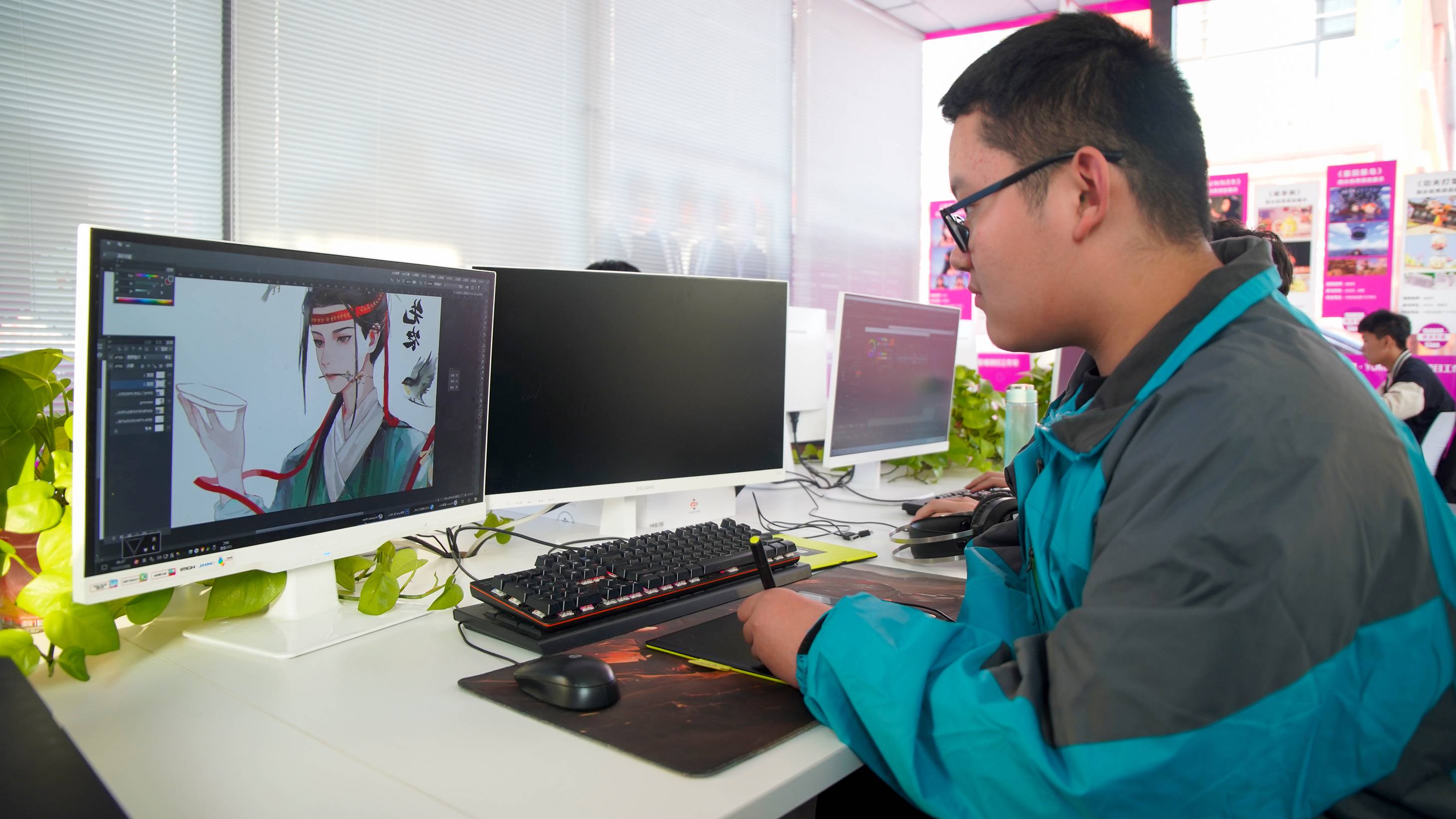 刘宇森说:“继续读初中和退学去学影视动漫这两种想法在我心里一直争论不休,那段日子我蛮煎熬的。妈妈也是偶然间在抖音看到了山西新华开设有4D游戏动漫制作工程师专业,于是决定先带我来学校参观一下,再做决定,但是出乎意料的是,我当时就报名了。因为我在山西新华看到了未来熠熠生辉的自己!”