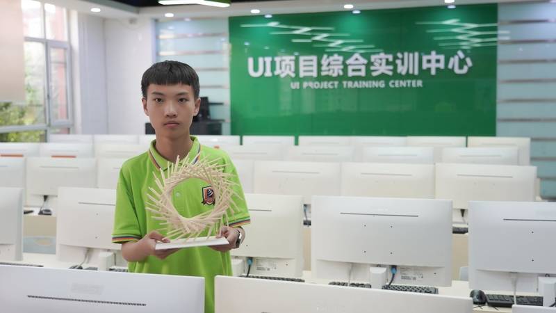 张贻超,来自离石的普通学子,平时就对设计感兴趣,专门学过沙画和插花。中考成绩不理想,没考上普通高中,想系统的学习设计课程,走技能成才的路子,家里对他的想法也表示很支持,开始和他一起选择学校。