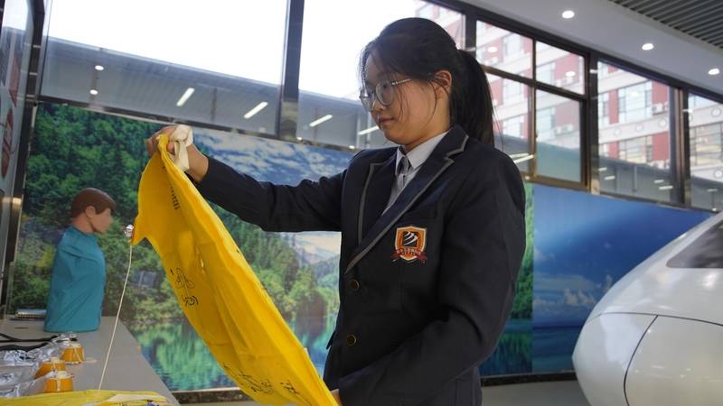 除了基础文化课学习,她还参加了乘务实操课程,通过模拟机组值机、安全检查和客舱服务等环节,增加了自己的实际操作能力。此外,她还参加了校内社团活动。这些经历让她不仅拥有了更多实践经验,也帮助她更好地理解乘务专业的重要性和挑战。