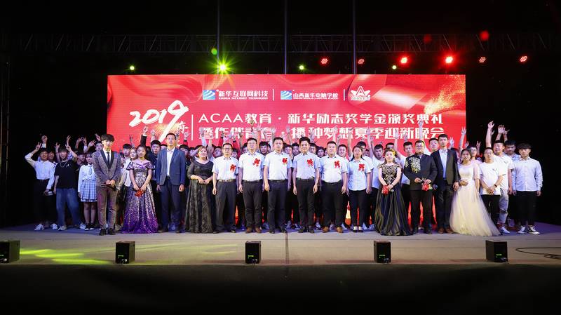 2019年6月18日山西新华电脑学校隆重举办2019年度ACAA新华励志奖学金颁奖典礼暨2019年夏季迎新晚会。出席本次晚会的有山西新华电脑学校校长、ACAA教育总经理王东、太原万通汽车学校校长、北京华信智原教育技术有限公司太原分公司总监申彦峰、ACAA教育副总经理郑文、山西新华电脑学校校长助理、山西新华电脑学校校区主任。