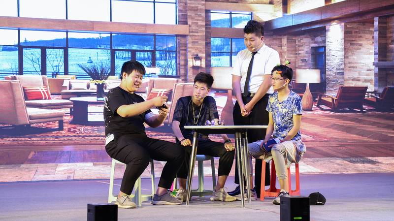 校区主任王文杰宣读山西新华电脑学校2019年度ACAA新华励志奖学金表彰文件。掌声起落之余,大家再次迎来了学生们为电音节精心准备的节目《新华新声音》Rap和小品《吹牛》。
