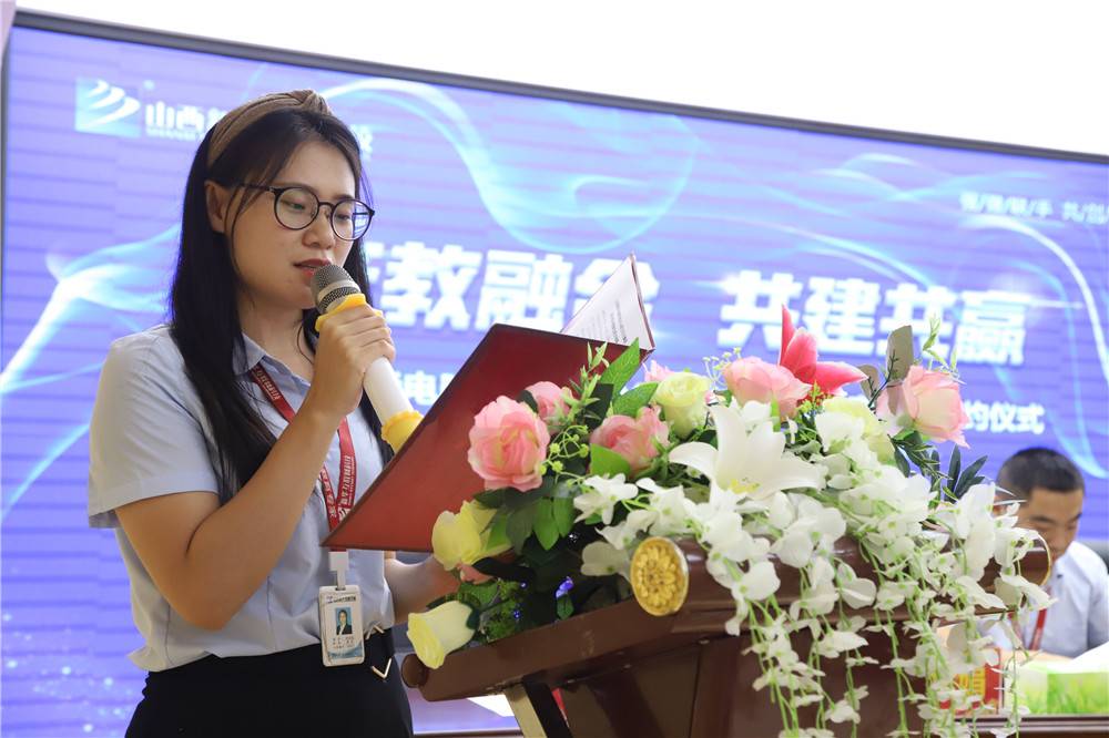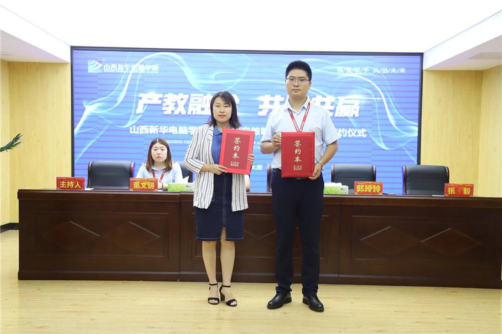 随着仪式的进行,山西新华创就业指导中心主管张毅来到签约席,与正方元集团人力资源部经理郭经理共同签订了校企合作协议,代表着山西正方元集团正式成为了山西新华电脑学校的校企合作单位,山西新华将继续开展订单式的人才培养模式,为合作企业培养专业人才。