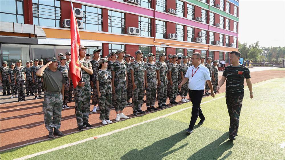 军训汇报表演在庄严的国歌声中拉开了序幕,接着伴随着威武雄壮的《中国人民解放军进行曲》,校区主任王主任在训练营领导的陪同下检阅了受训方队。