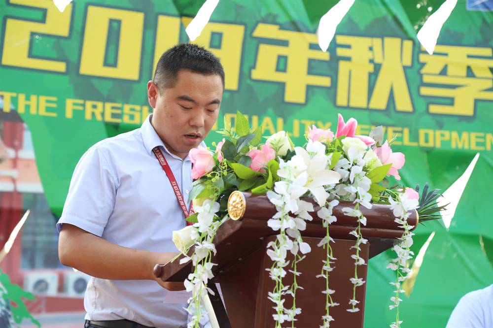 在庄严的还旗仪式结束之后,王文杰主任对这次军训作了较后的发言总结。他充分肯定了这7天以来,同学们在军训中发生的巨大变化。并代表学校向新同学的到来表示热烈欢迎,向为军训工作付出辛勤劳动的部队官兵表示衷心感谢。他希望同学们能把军训中所养成的好纪律、好品德、好习惯带到学习生活中去,努力学好科学文化知识、增强实践能力和创新精神,不断提高思想道德修养,把老师、家长对同学们的希望转化成学习成才的动力,努力把自己培养成品学兼优、全面发展的高素质IT人才。