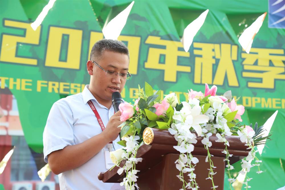 军训新生吴哲美代表2019级秋季新生发言,她表示会把这次拓展训练作为人生中的一个新的起点,在今后的学习和生活中要保持和巩固军训所取得的成果,以崭新的姿态、饱满的热情认真学习,争做德才兼备的合格新华人。