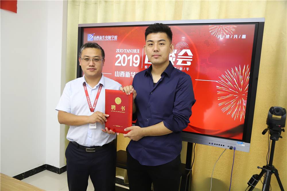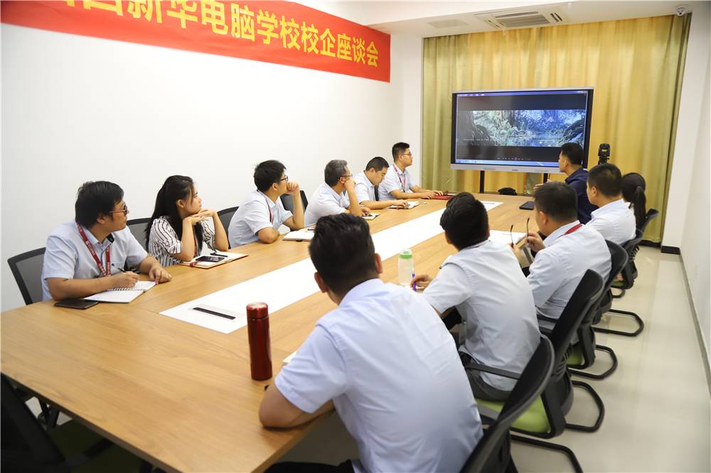 山西新华电脑学校校区主任王主任、源创艺科技有限公司技术总监智总、源创艺科技有限公司人事经理雷经理、山西新华电脑学校教务处主任朱主任、山西新华电脑学校创就业指导中心主管张主管等企业代表及学校领导与山西新华电脑学校相关教务和就业办老师共同出席了此次座谈会。