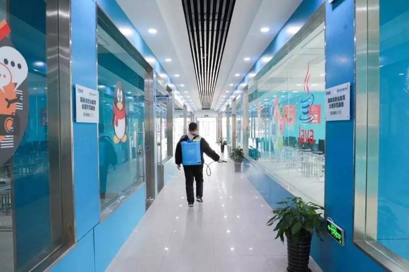 学生延迟开学,但学校坚持每日安排值班老师进行晨、午检,严禁外人进入校园;及时清扫校园,清除垃圾,并按要求对校园公共区域进行消毒处理,创造卫生、整洁、健康、文明的校园环境。