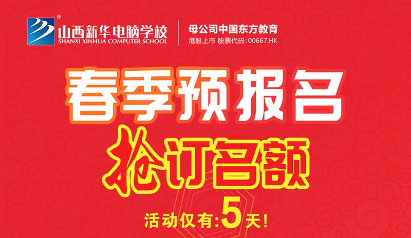 摘要: 山西新华2020春季预报名全面启动 早择校、早成才、早就业 给自己多一个选择 给人生一个转机 它可以改变你! 疫情期间,山西新华电脑学校校园全面升级, 各资源集...