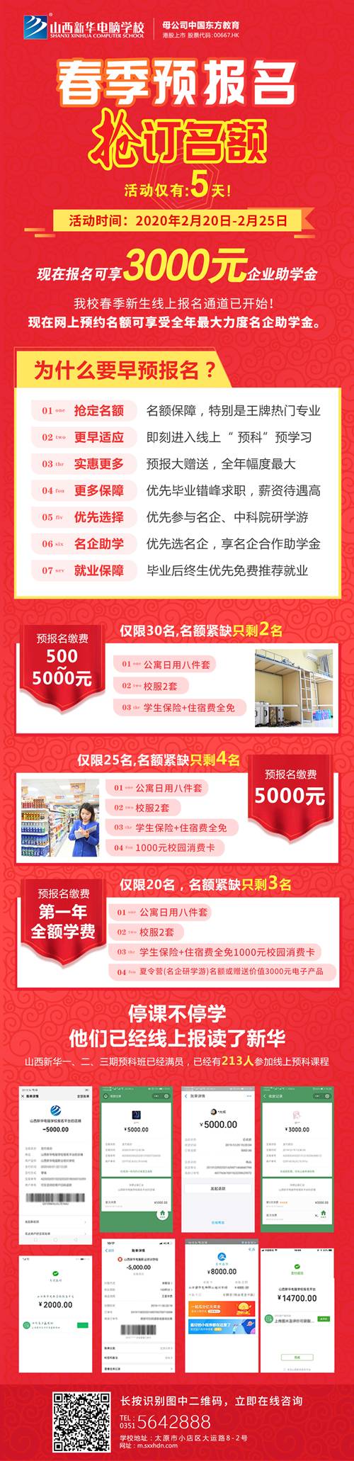 我校2020年春季招生已经正式启动,预科班名额全面开放,春季预科班就是帮助同学们在年前提前通过线上直播学习,提高专业基础