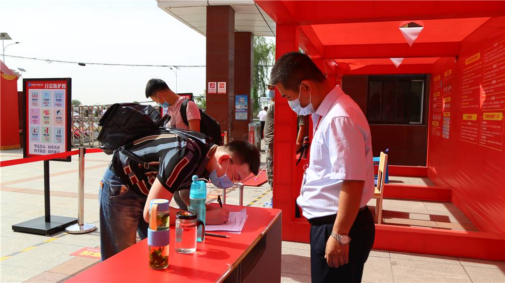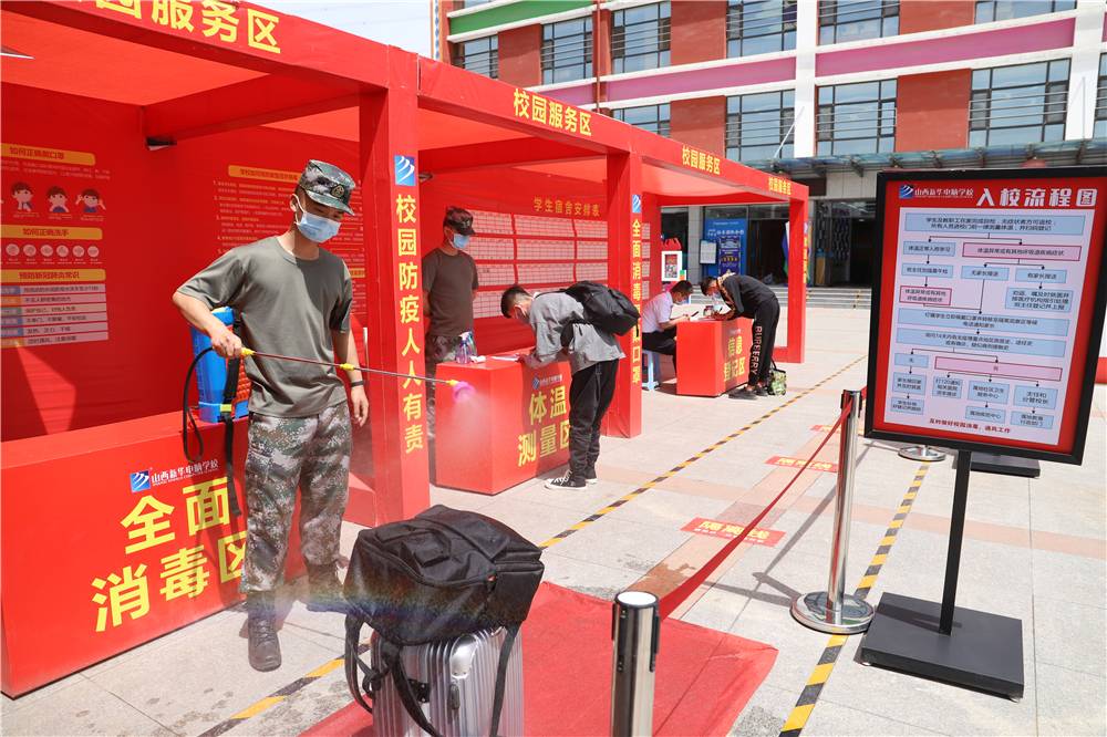 “同学请出示健康码,并进行行李消毒”,在校园大门处,班主任老师们正在给学生们检测体温,无数次的举起和放下,一遍一遍的细心提醒和叮咛,都是为了确保每位学生做到有序、安全的返校。山西新华所有班主任与驻校教官在各自的岗位上有序地进行着行李消毒、返校信息登记等各项工作,为学生的健康安全保驾护航。