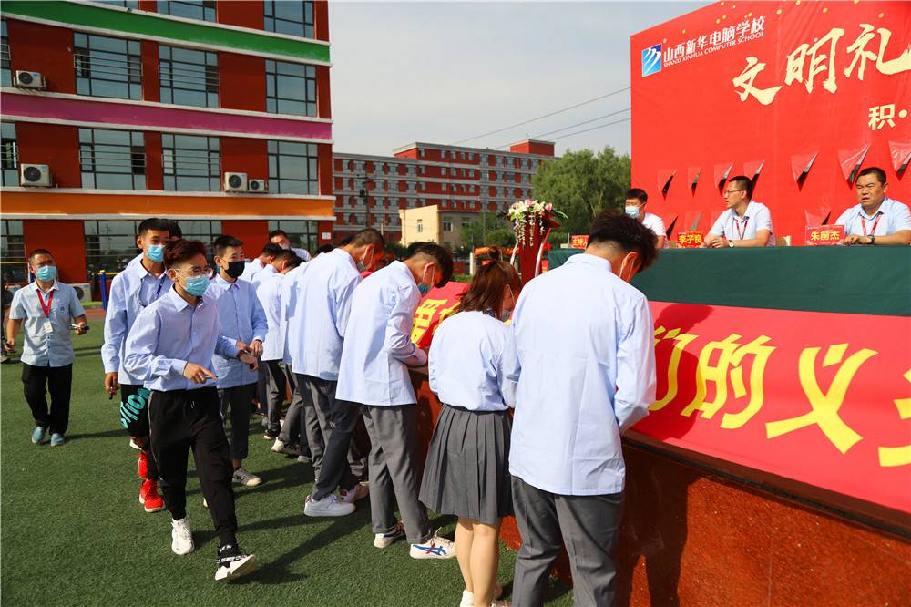 拨开疫情的阴霾,吹着初夏的微风,我们迎来了山西新华电脑学校“文明礼貌月”。为进一步增强学生的文明礼貌意识,加强学生的职素教育,促进学生养成良好的行为习惯,营造“干净、有序、文明、乐学”的校园文化环境,6月7日上午,山西新华“文明礼貌月”启动仪式隆重举行!山西新华电脑学校校区主任朱前杰及其他相关领导和首批返校学子共同见证了此次活动的启动。