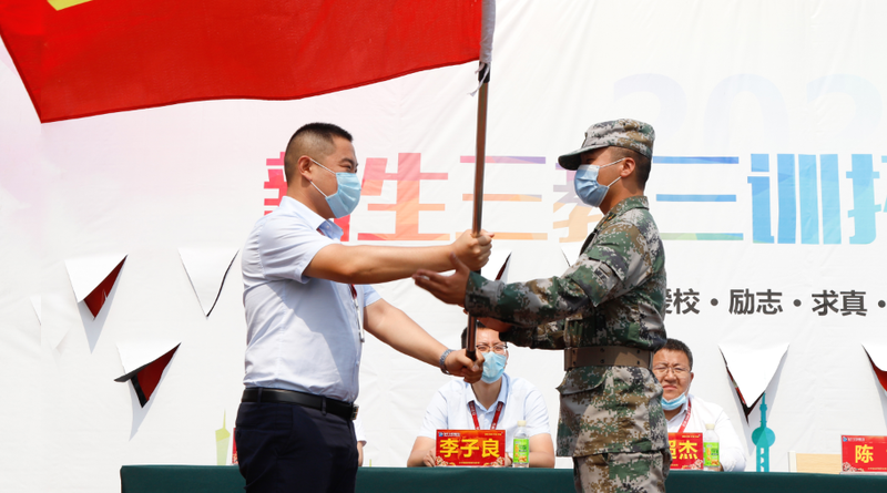 山西新华校区主任朱主任为军训营郑重授旗,旗帜飞扬,梦想起航,2020届新生的军旅生涯正式开始了!