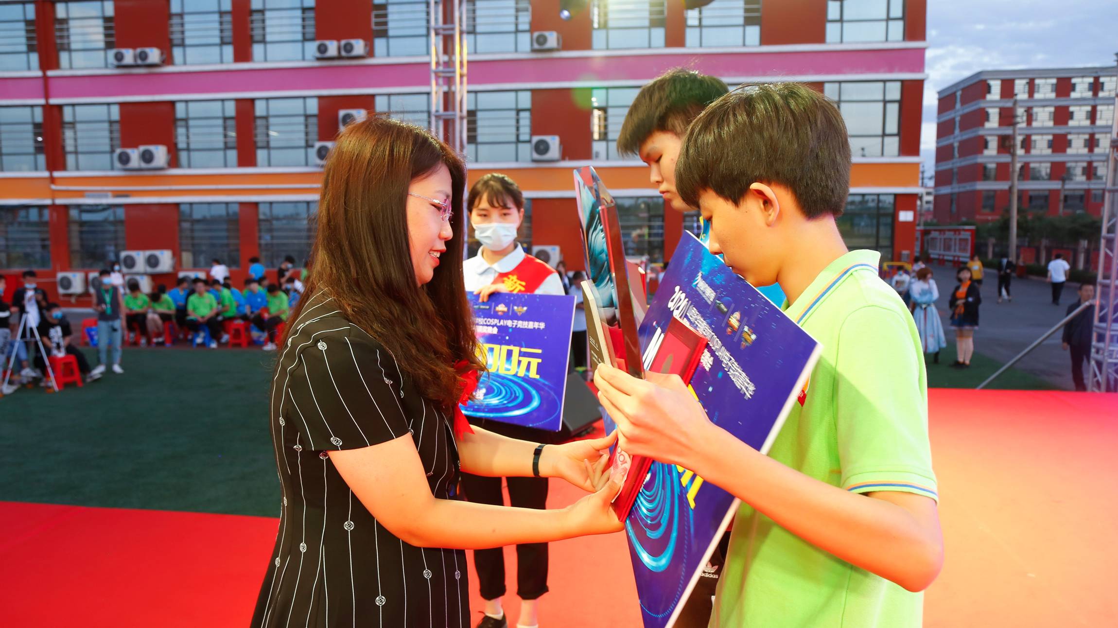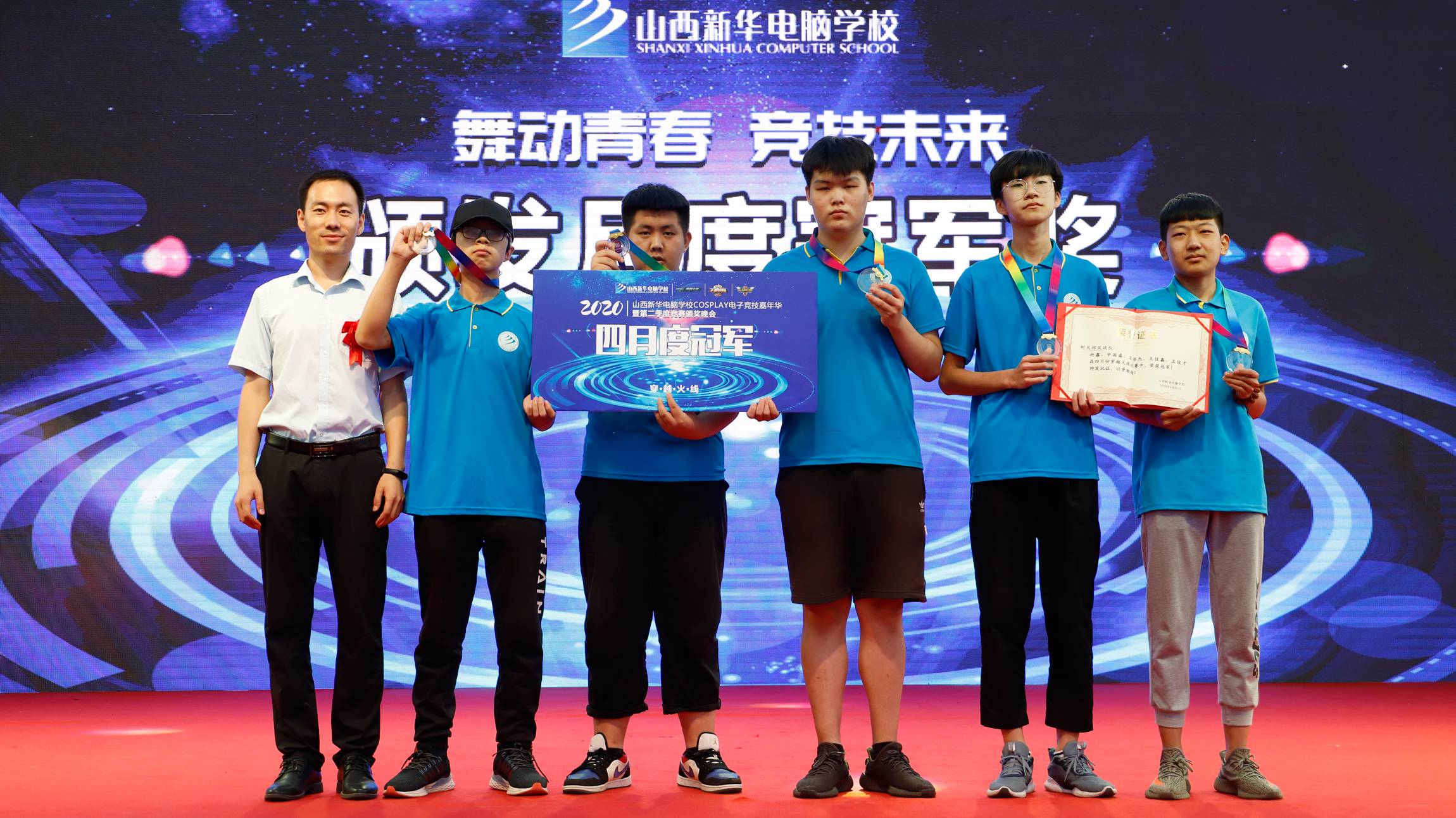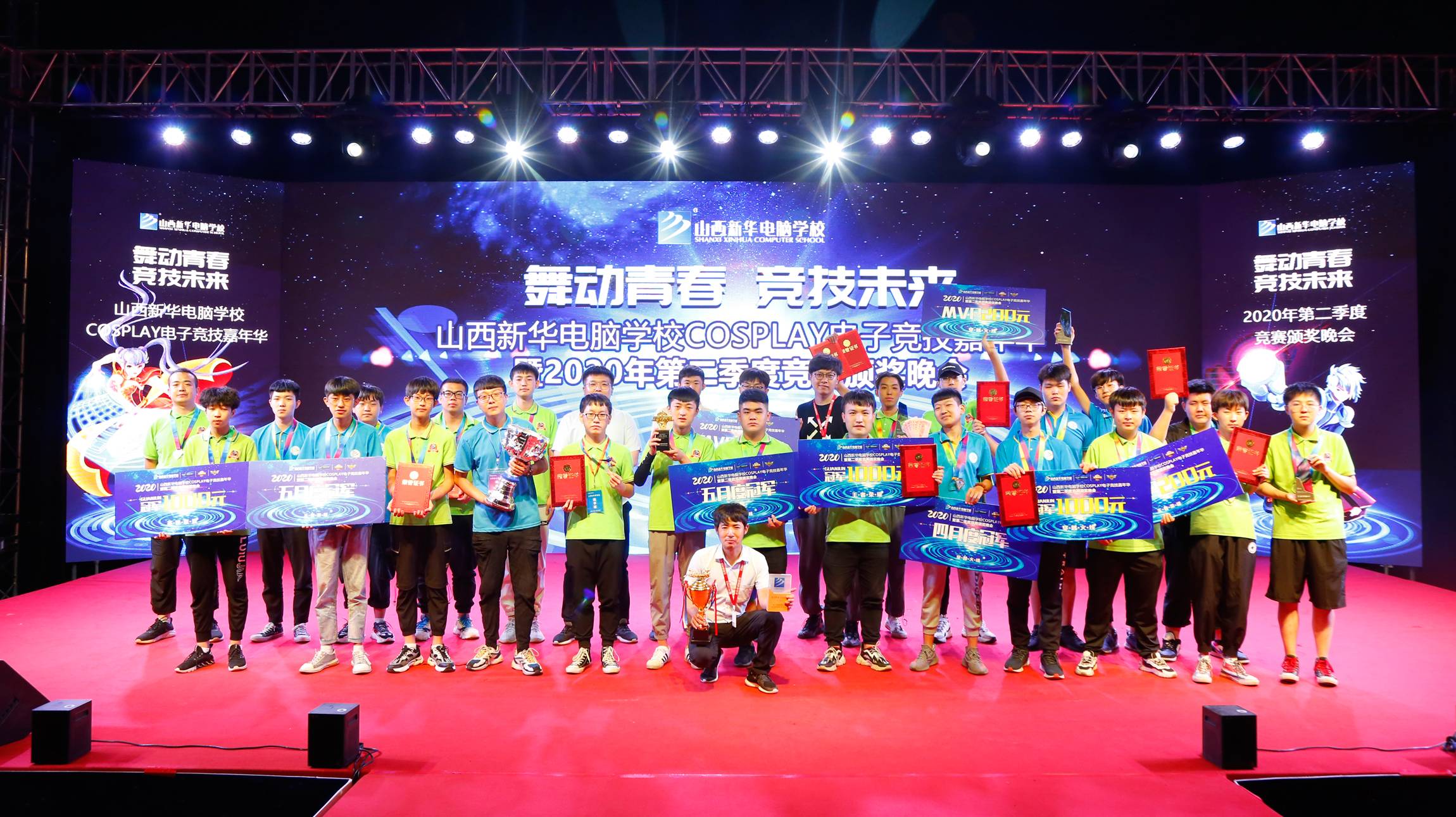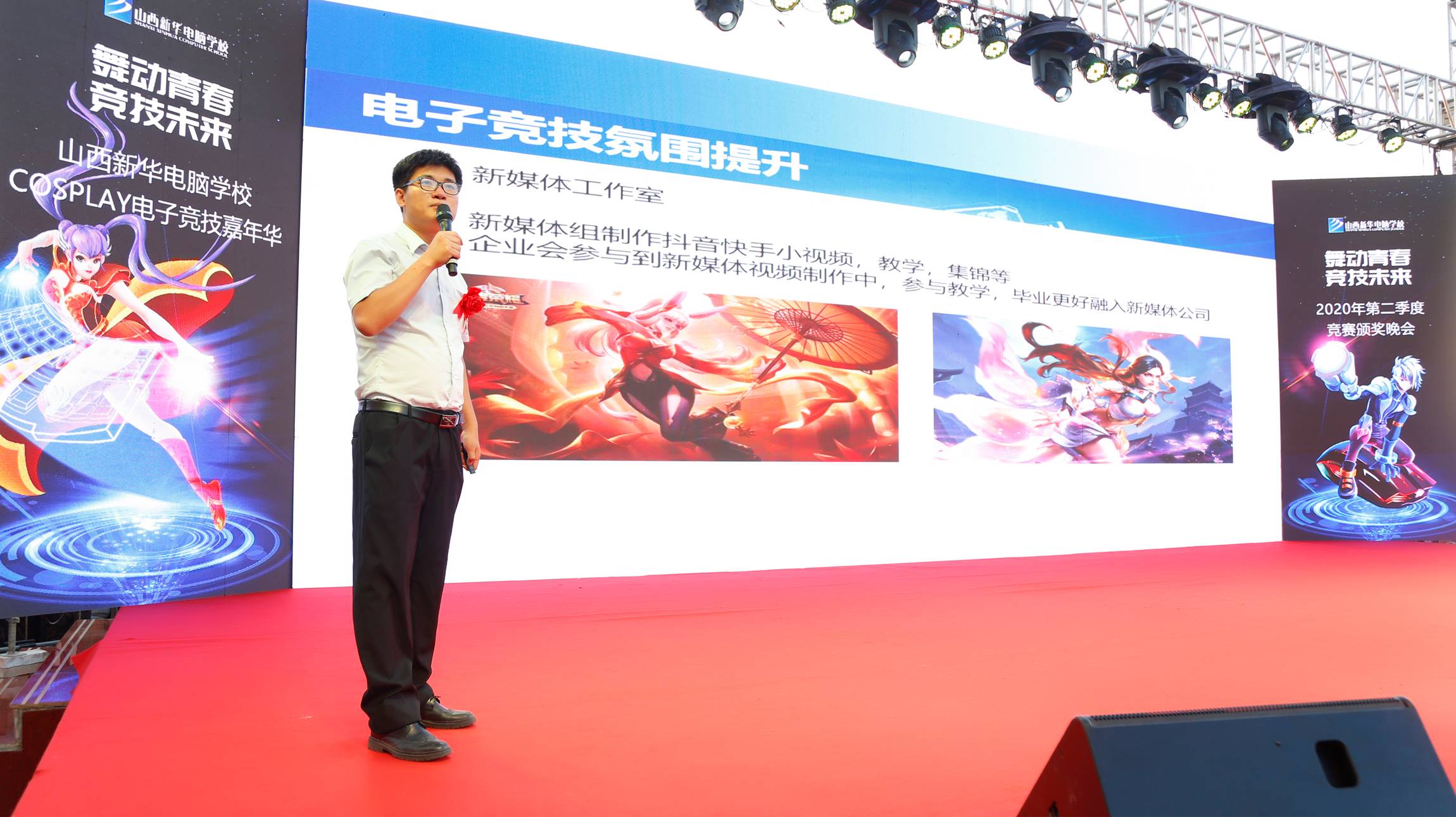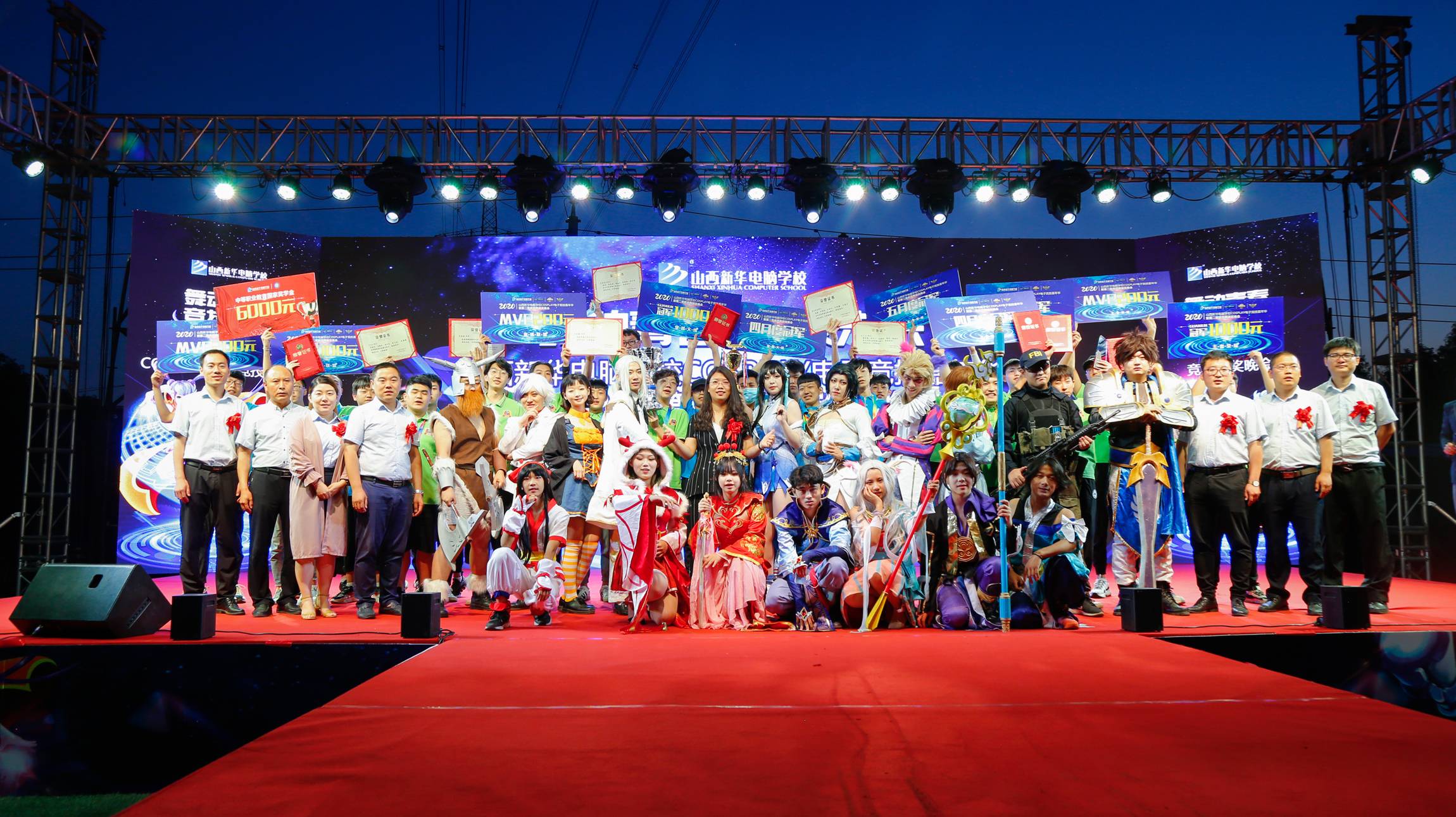 2020年6月26日晚山西新华“cosplay电竞嘉年华晚会+较强战队MVP颁奖仪式”在足球场举行。山西新华电脑学校校长助理王丽萍等院校领导与山西新华全体师生共享欢乐时刻。