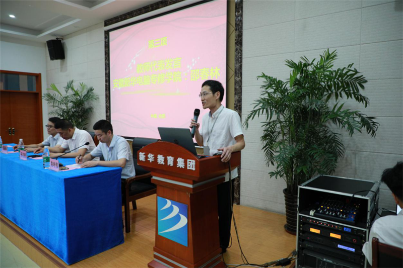 新华教育集团电脑事业部总经理助理孙立民首先致欢迎辞,他在致辞中表示:让学生学到较新的技术,让学生有弯道超车的机会,增强学生的动手能力,是新华教育不变的方针与独特的教育理念,新华·阿里云精英特训营的开营,为新华学子搭建了通往世界名企阿里云的平台。