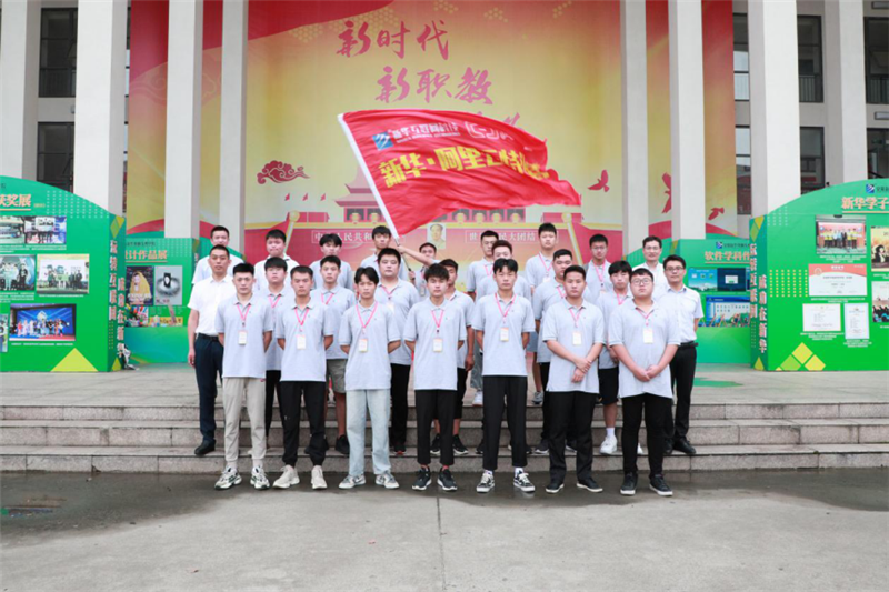 较后,安徽新华电脑专修学院副院长颜陈陈上台为精英集训营的学生授旗,正式宣布新华·阿里云精英特训营正式开班,并合影留念。