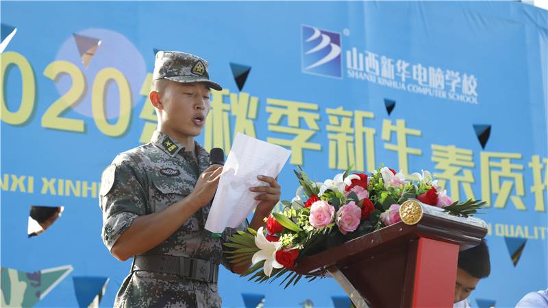 开营仪式上,山西新华电脑学校校区主任朱主任发表了热情洋溢的动员讲话,他首先代表学校对新生的到来表示热烈的欢迎,对承担本次军训的教官表示衷心的感谢,并勉励所有参训同学:现在正处于人生的黄金阶段,在人生的这一主要时段,同学们要成为一个文明健康的高素质的现代人,除了掌握符合时代要求的技能外,更要有强健的体魄、顽强的意志、坚强的信念、协作的精神。希望同学们通过军训的洗礼,陶冶情操,磨练身心,在困难和挫折面前变得更加坚强而自信。同时要求同学们自觉地遵守学校的一切规章制度,上好新生“首课”,努力做一个遵纪守法的新华学子。