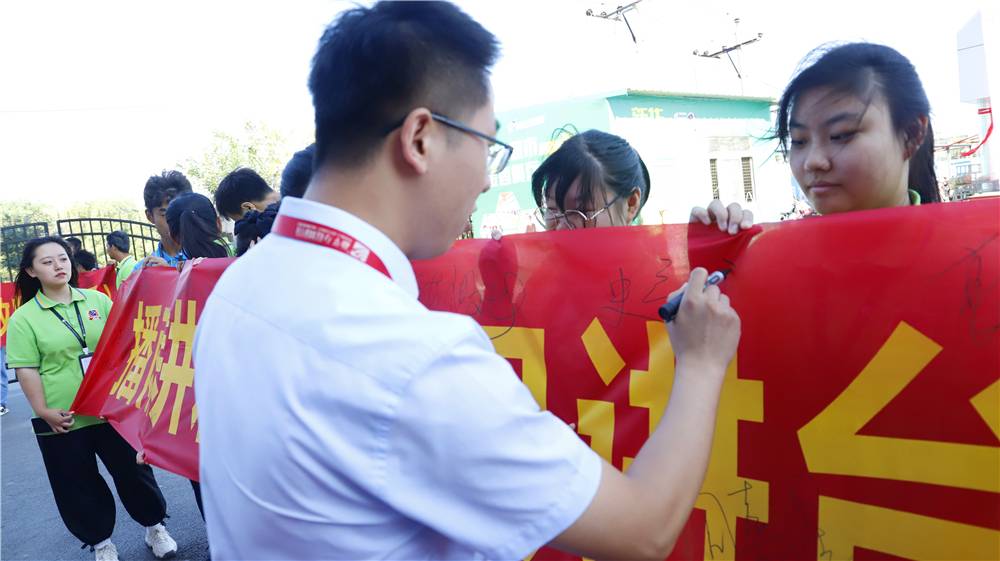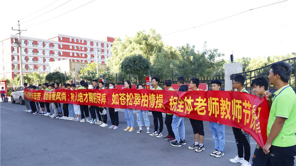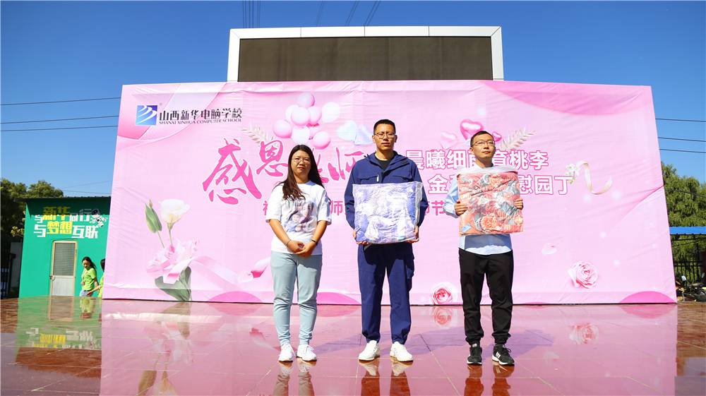 美丽的校园环境,欢乐的节日气氛。9月10日,山西新华电脑学校的校园内特别热闹。校园里有学生社团自发组织的队列,身着统一服装,迎接着每一位新华老师,当老师们走进校园足球场时,为每位老师送上一张写满祝福的贺卡、老师自己的专属艺术照和鲜花,道一句“老师,您辛苦了!节日快乐!”。老师们在学生的一句句祝福中,走着崭新的红毯上,在教师节祝福标语条幅上签下了自己的名字,老师们个个洋溢着幸福的微笑,在他们的节日里,他们是较耀眼的大明星。