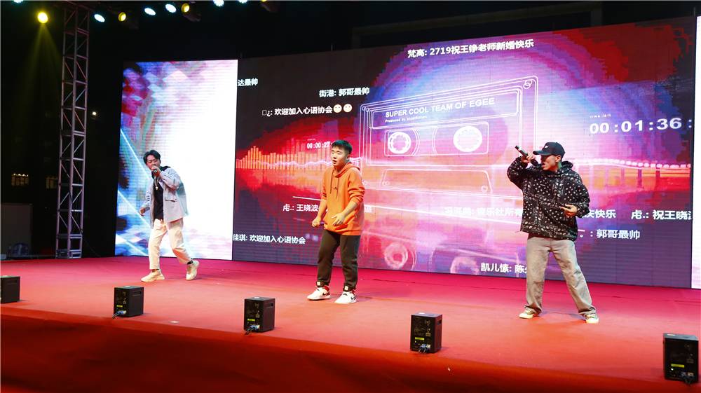音乐社同学们改编创作的情景剧《启程新华》充满青春浪漫的气息,伴随着美妙的音乐和大屏幕上的新华校园的背景,演员们在舞台上翩翩起舞,把所有人带回了青春校园时代。时尚与动感的舞蹈《郎才女貌》展示了我大新华学子多才多艺的艺术魅力,博得现场师生阵阵掌声!小品《乌龙快递》、《一切都是较好的安排》与相声《打灯谜》演员们用灵活巧妙的构思、别出心裁的设计、妙趣横生的表演博得了观众们的阵阵欢笑和喝彩。舞蹈《下个路口见》、《向快乐出发》展现了新华积极向上的青春力量,为现场观众献上了一场不一样的视觉盛宴。《圣诞节》说唱表演与舞蹈《BIG BANG》的先后上演更是一下子就把气氛推上高潮,让所有观众跟随他们的节奏一起律动了起来,肾上腺素直线上升!