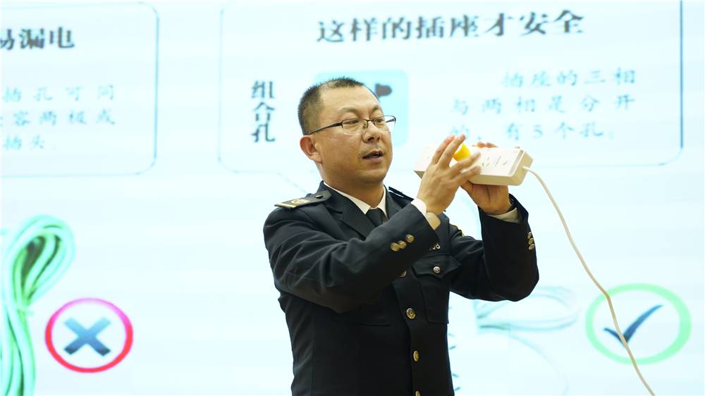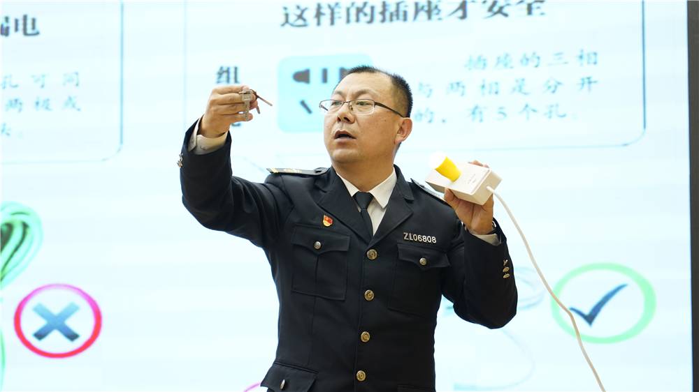 较后刘教官重点向大家宣讲了火灾发生时正确的应对方法:要处变不惊,临危不乱,沉着冷静,并强调要落实“三级响应、一岗双责”。刘根旺教官富有激情的讲解,使全体师生听得津津有味,意犹未尽。