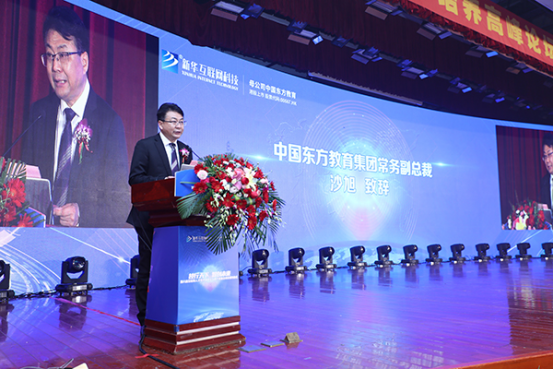 中国东方教育集团常务副总裁沙旭首先致开场词,沙总表示: 社会的发展需要人才的支撑,信息技术的进步同样需要互联网相关人才的支撑。校企合作、工学结合,职业教育与行业联合等教学模式,将会为职业教育产教融合协同育人指明方向!