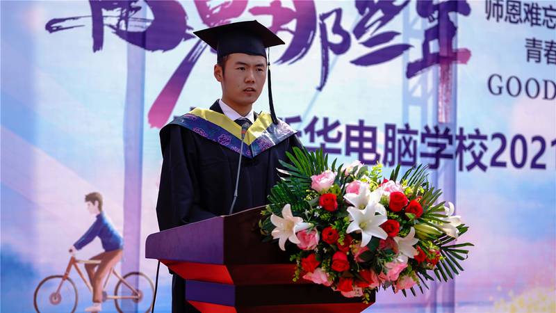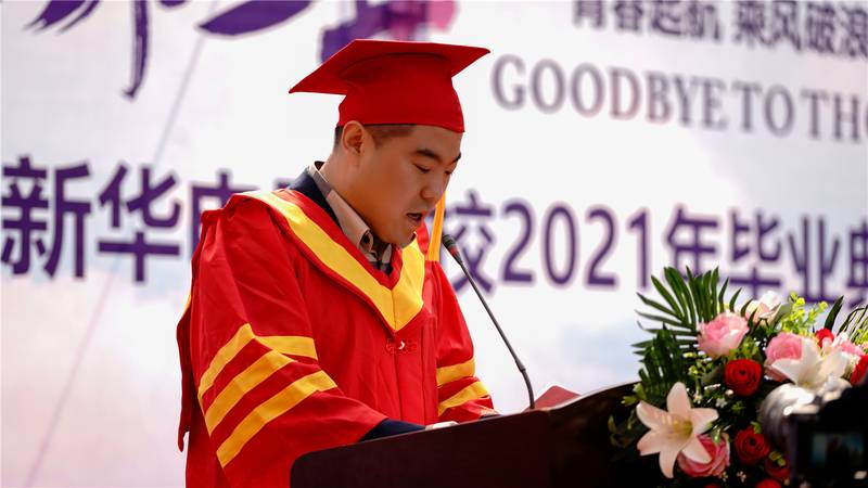随后,教务处朱主管宣读了《关于表彰2021届出色毕业生的决定》文件,并由学校领导为在三年中表现突出的毕业生颁发了荣誉证书。毕业生代表用朗诵《感恩新华》分享了在新华三年来的点点滴滴欢乐与进步,回顾了在专业道路上的酸甜苦辣和克服困难后取得一个个阶段性进展的喜悦和激动,以及伴随而来的成熟和自信,向母校、恩师表达了较衷心的感谢。