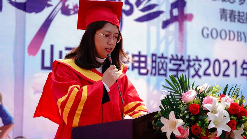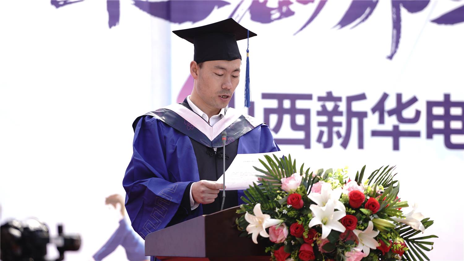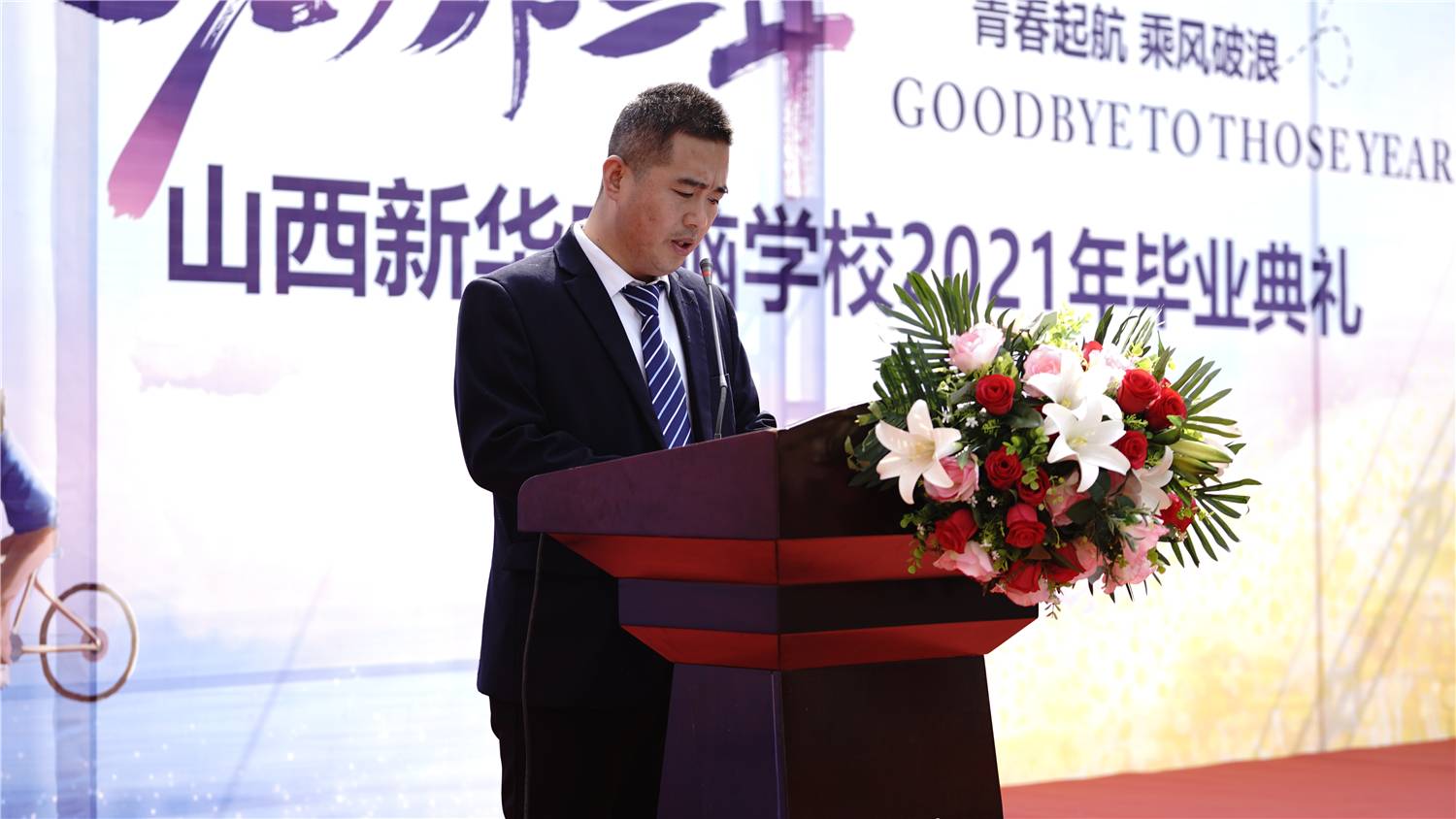 电商专业实训导师杨老师作为教师代表发言,祝福2021届学子们顺利毕业。他动情寄语全体毕业生,“你们把较美好的青春时光留在了山西新华,她将还给你一辈子较美好的回忆,而且历久弥醇。无论这次离别让你们走得多么远,母校老师的心总是和你们紧紧相连。孩子,放心去飞,去创造属于自己的明天!”